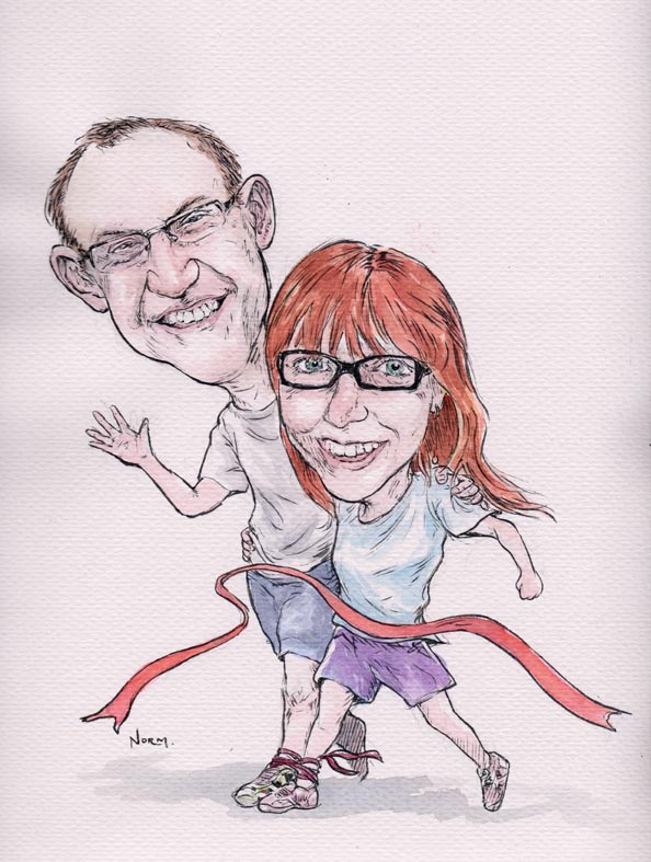Finished with slight amendments form the line drawings. These could fit in an A4 frame although it may seem a be a bit cramped. The actual paper size is 36cm H x 27W. Some of the paper around the caricatures are cropped to fit my scanner.